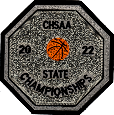 This is the souvenir letterman patch available for the 2022 CHSAA State Basketball Championships.