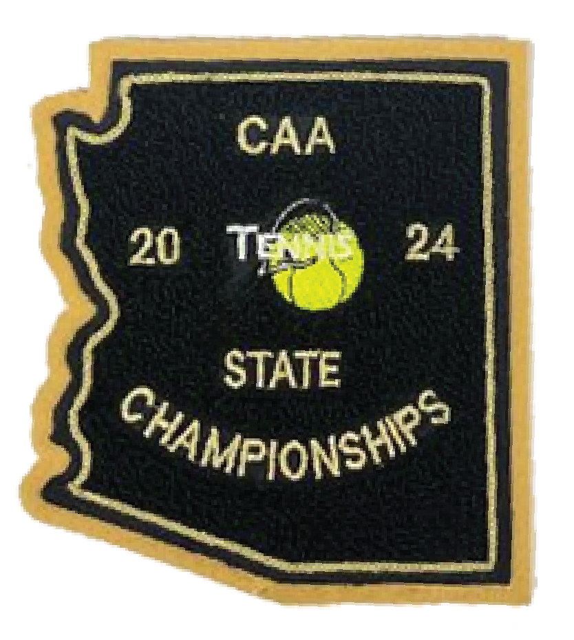 This is the souvenir letterman patch available for the 2024 CAA State Tennis Championships.