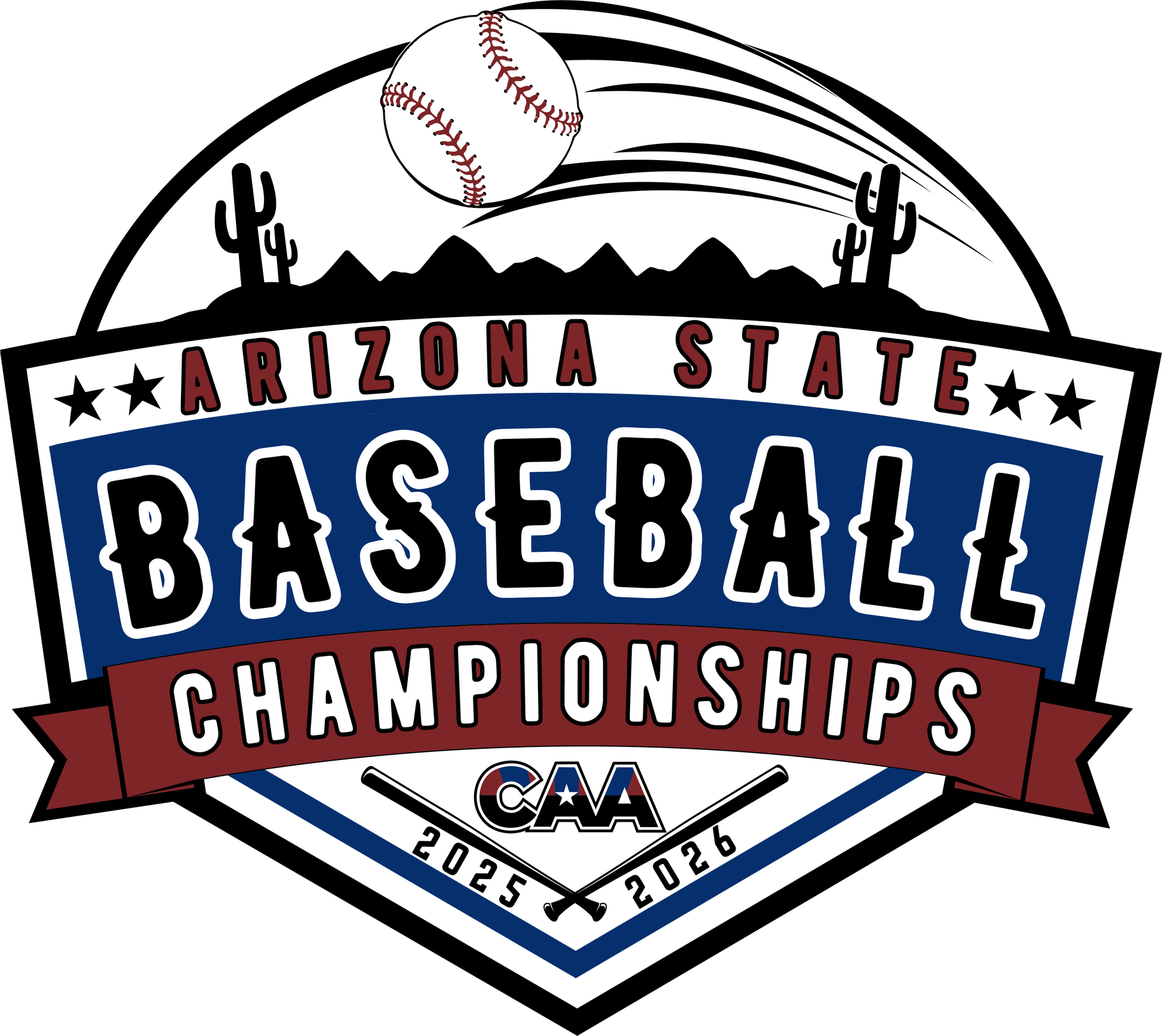 This is a 4-pack of the souvenir sticker available for the 2025-26 CAA State Baseball Championships.
