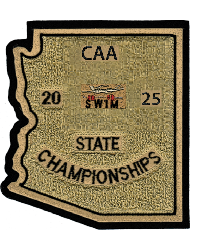 This is the souvenir letterman patch available for the 2025 CAA State Swim & Dive Championships.