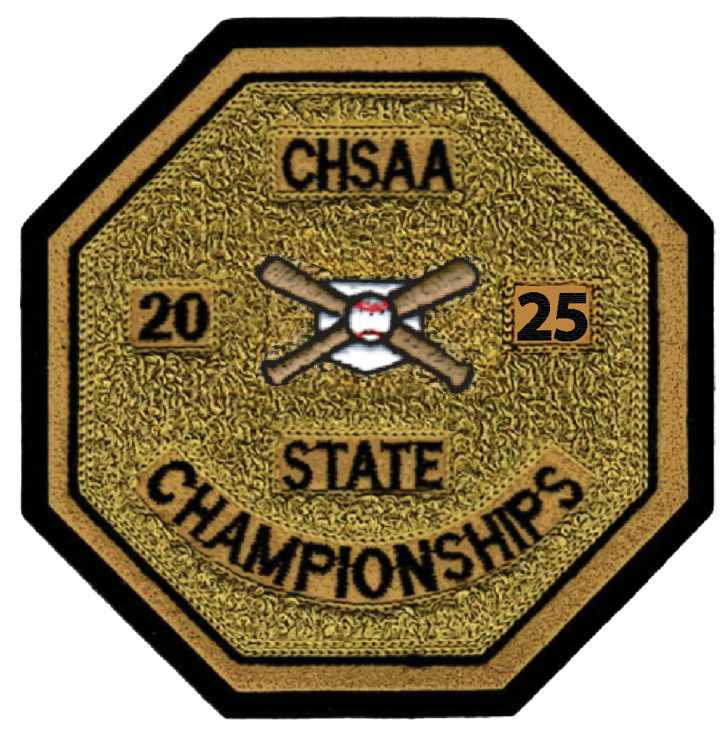 This is the souvenir letterman patch available for the 2025 CHSAA State Baseball Championships.